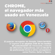 El ingreso a las páginas web del país a través de Chrome y, por supuesto, a las de sus medios de comunicación, registra un 84.02 % de uso, muy por encima de Mozilla Firefox, con un 5.06 %; seguido por Safari, con 3 %; Opera, con 2.39 %; Microsoft Edge, con 2.30 % y otros navegadores, con 3.23 %.